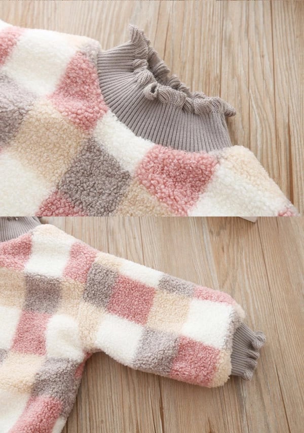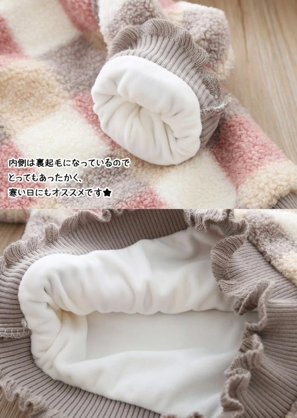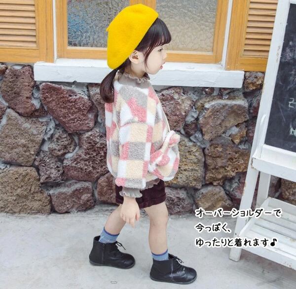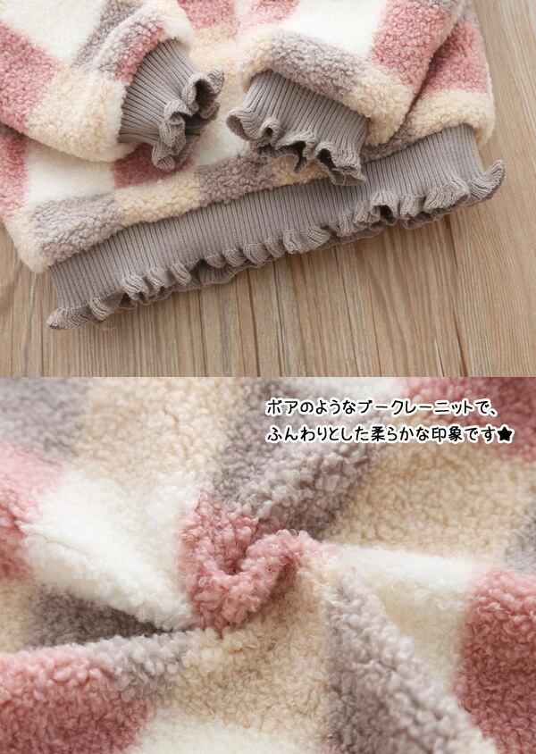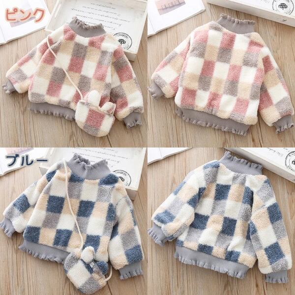 【宅】【在庫処分特価】ラスト1点セール! キッズ ミニポシェット付き チェック柄ニットトレーナー ニットソー ボアニット 女の子 裏起毛 ボア フリース フリル 子供服 子ども服 こども服 韓国 出産 お祝い プレゼント ギフト 秋 冬 70 80 90 100 110 120 rstp-k5