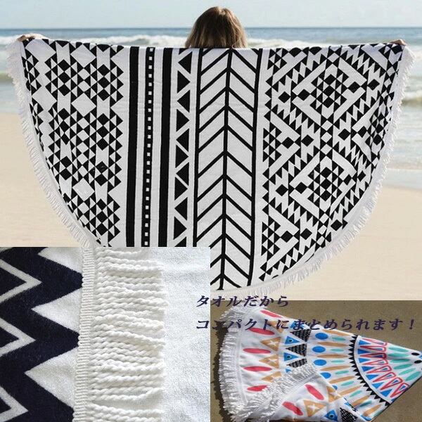 【宅】ビーチタオル ラウンド 直径150センチの大判サイズで便利 厚手 インテリアラグ としても使える