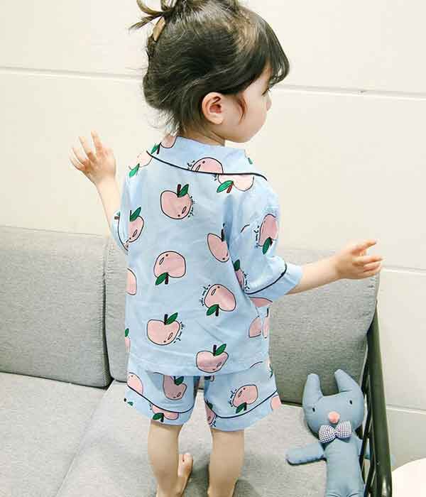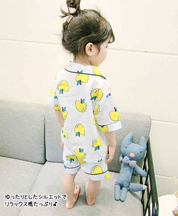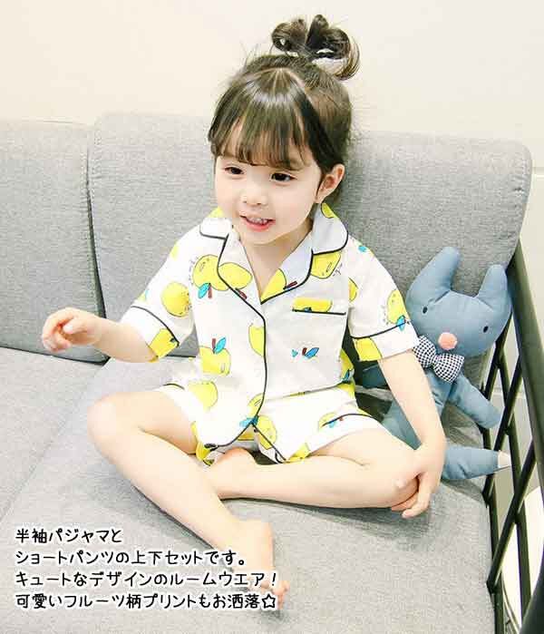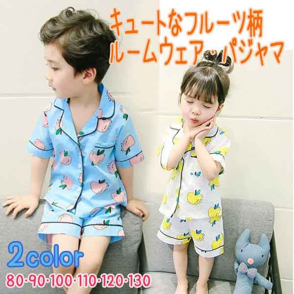 【メール便送料無料】【在庫処分特価】キッズ フルーツ柄半袖パジャマセット 上下セット ルームウェア 半袖 ショートパンツ 半ズボン 女の子 男の子 可愛い 子供服 子ども服 韓国 出産 祝い 内祝い プレゼント 夏 部屋着 りんご リンゴ 80 90 100 110 120 130 rsrw-k1 180615