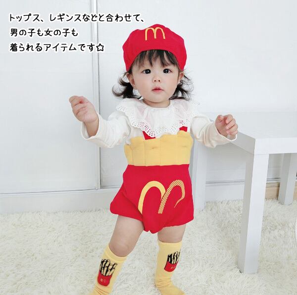 【送料無料 宅メ】ベビー キッズ フライドポテトなりきりサロペットロンパース