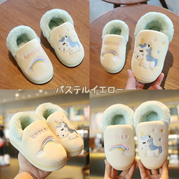 ベビー キッズ ユニコーン ふわもこルームシューズ もこもこ ふわふわ ゆめかわ 虹 レインボー スリッパ 女の子 ガールズ 可愛い かわいい 子供 子ども こども 韓国 ギフト 誕生日 出産祝い プレゼント 秋 冬 姉妹 双子 13 14 15 16 17 18 19 20 rsac-k4 191122