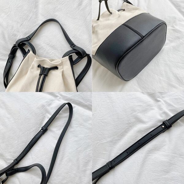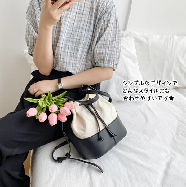 大人気!異素材ミックス巾着バッグ キャンバスバッグ ハンドバッグ ショルダーバッグ コンパクトバッグ 鞄 かばん 斜め掛け 手提げ トレンド 高見え おでかけ デート 春 夏 帆布 rsbg-l15 210330