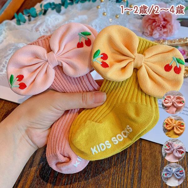 【ゆうパケット送料無料】ベビー・キッズ りぼん付きソックス 靴下 ベビーソックス 女の子 リボン さくらんぼ 刺繍 滑りにくい 安心 子ども こども 子供 ベビー 出産祝い プレゼント 誕生日 ギフト rsso-b3 210908