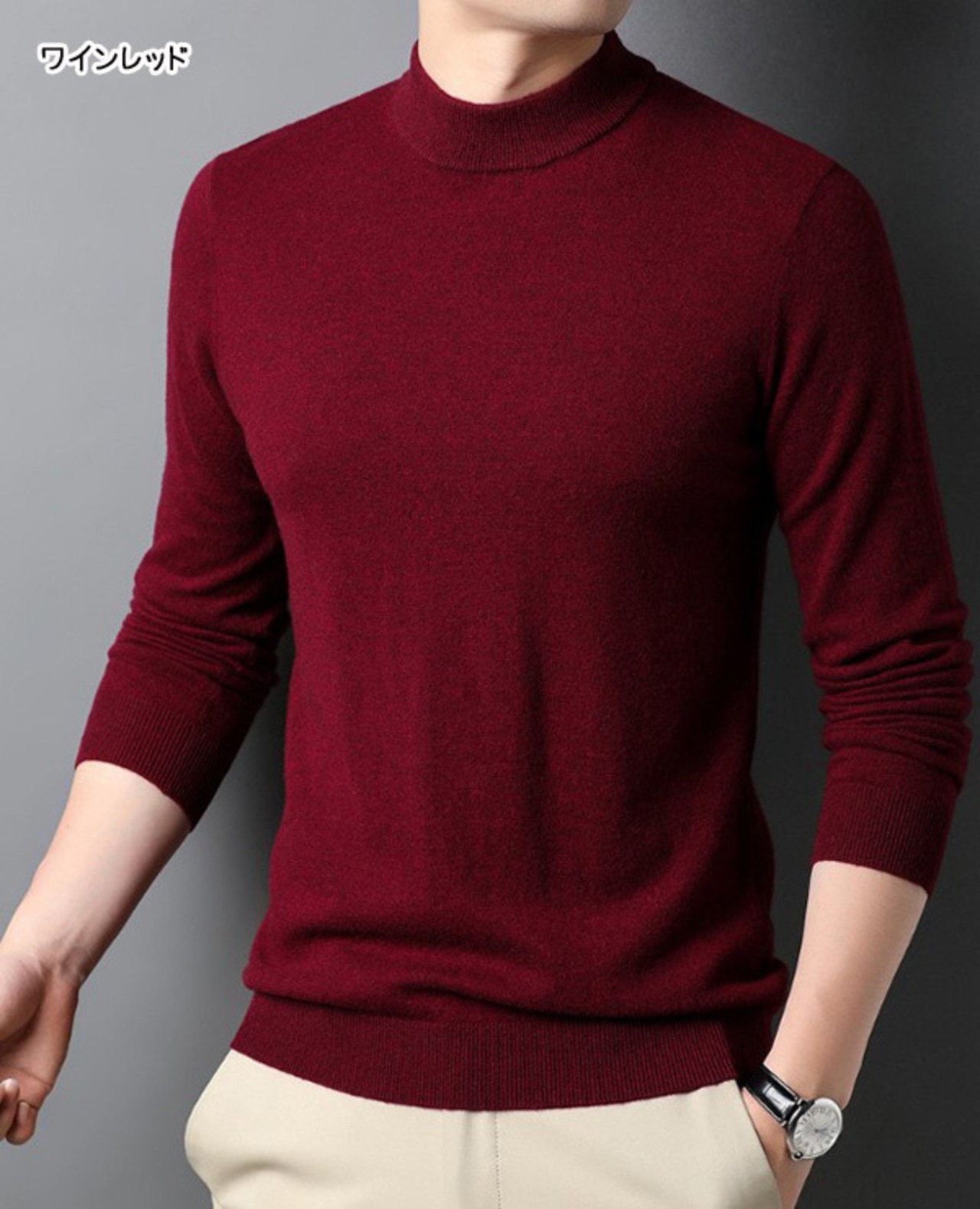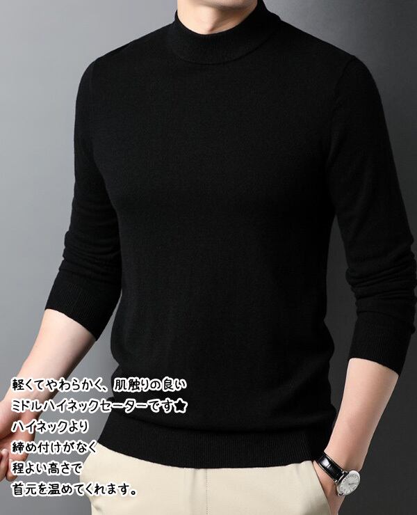 【宅】メンズ ウール混! やわらか肌触りの良いミドルネックセーター ニット トップス ハイネック シンプル 無地 カシミアタッチ ウール 保温性 防寒 男 秋 冬 通勤 ビジネス 普段着 bllnt-m1 211102
