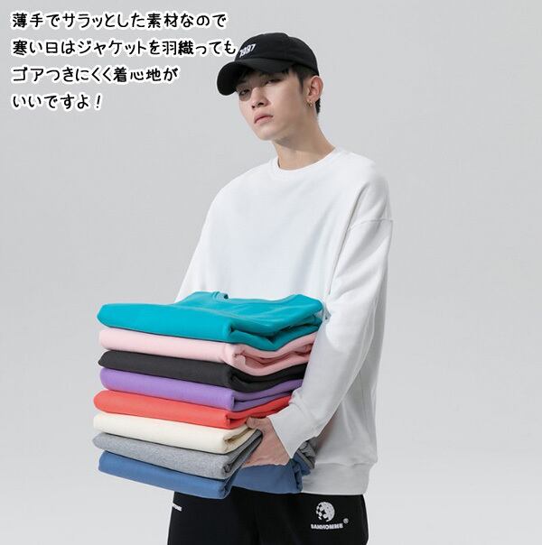 【宅】メンズ オーバーシルエットスウェット トレーナー 薄手 無地 シンプル ヘビロテ 普段着 部屋着 おでかけ お洒落 オシャレ おしゃれ トップス 格好いい カッコイイ 男 男性 ユニセックス レディース 秋 春 blltl-m1 211109