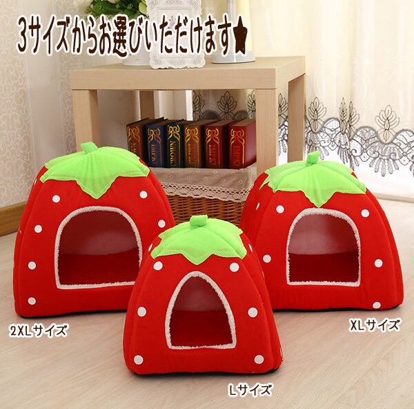 【宅】いちご型 犬猫用ペットハウス ペットベッド ペットクッション 室内ハウス 犬用 猫用 犬 ワンちゃん わんちゃん 猫 ネコ 超小型犬 小型犬 中型犬 可愛い かわいい プレゼント誕生日 春 秋 冬 愛犬 愛猫 ペット イチゴ 苺 ドーム型 rsdg-f12 211207
