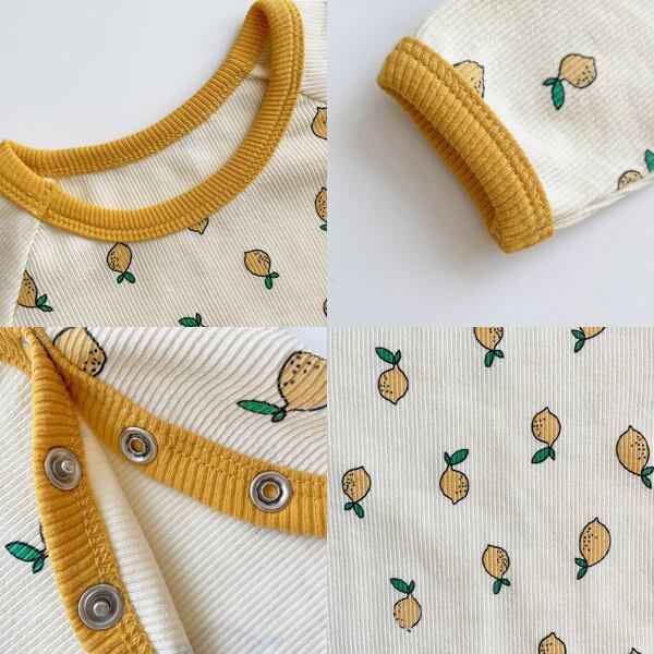 レモン柄が可愛い、総柄ロンパースと、