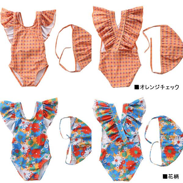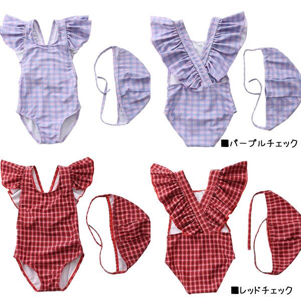 【送料無料 ゆ】ベビー キッズ 肩フリルスイムウェア 女の子 水着 子ども オールインワン つなぎ フリル 水泳 夏 海 プール スイミング チェック ギンガム ドット いちご 苺 70 80 90 95 100 110 120 1歳 2歳 3歳 4歳 5歳 6歳 7歳 幼稚園 保育園 小学生 RSSW-K13 220315