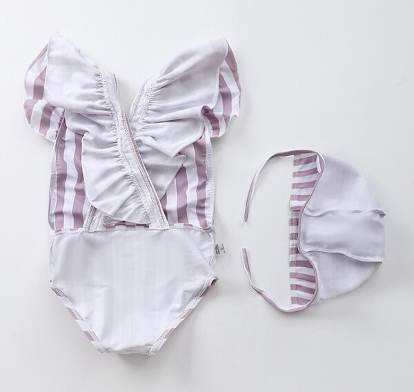 肩フリルと後ろのクロスフリルがとっても可愛いスイムウェアです☆