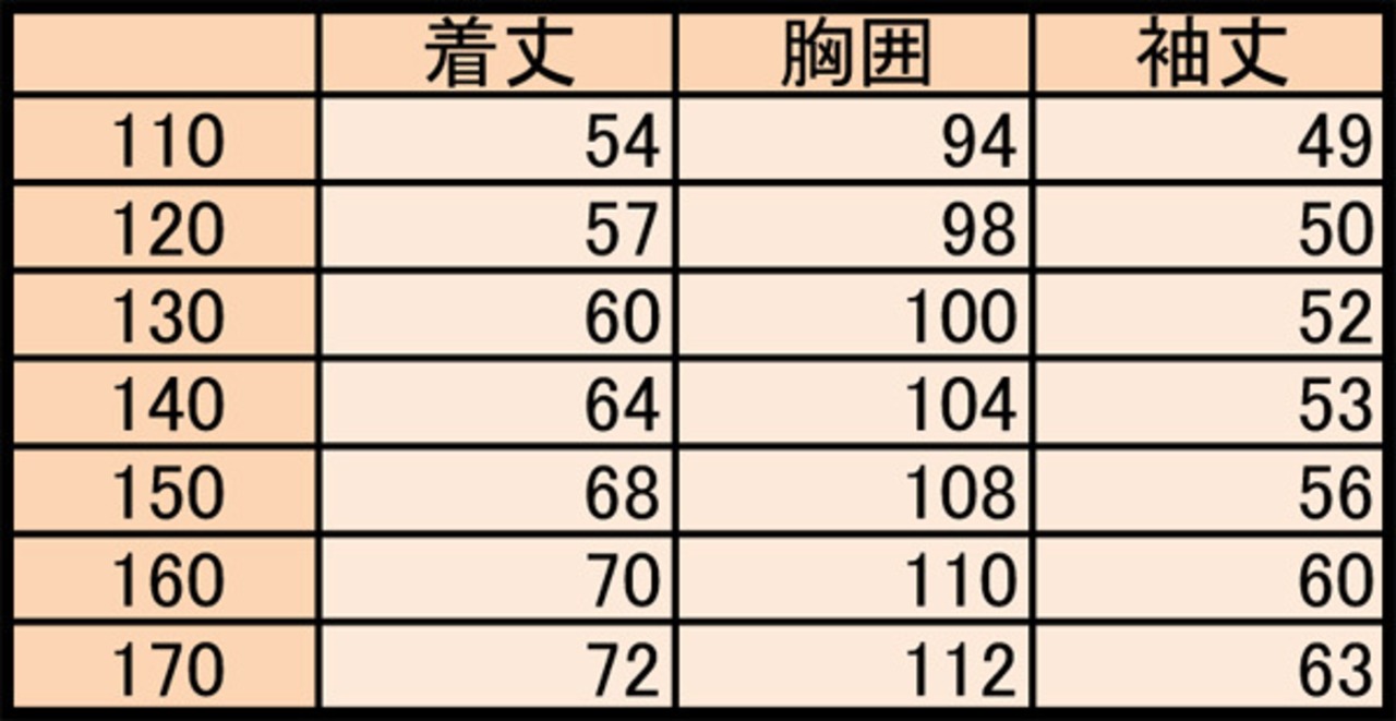 サイズ:110/120/130/140/150/160/170