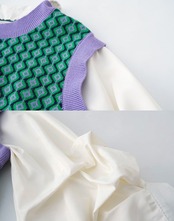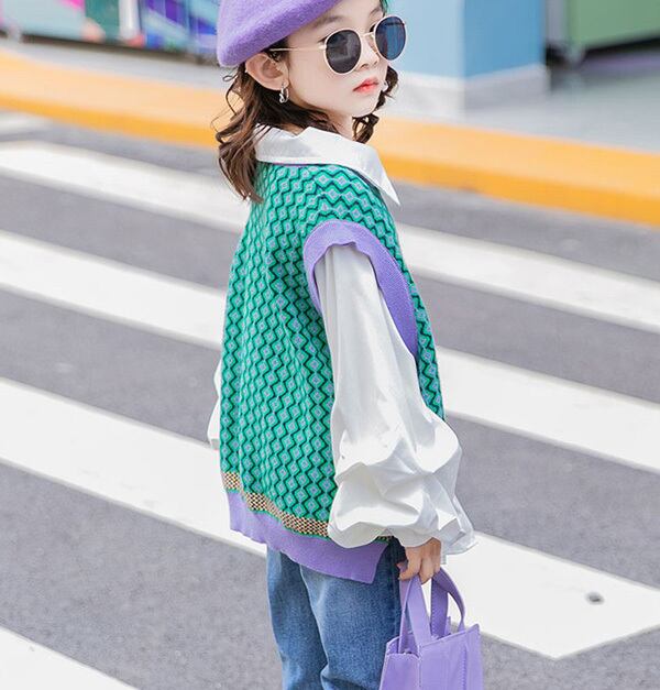 【宅】キッズ ベスト&ブラウスドッキング トップス レイヤード風 女の子 子ども 子供 こども 可愛い かわいい カワイイ お洒落 おしゃれ オシャレ レディース モダン レトロ感 春 秋 韓国 110 120 130 140 150 160 170 rstp-k9 220412