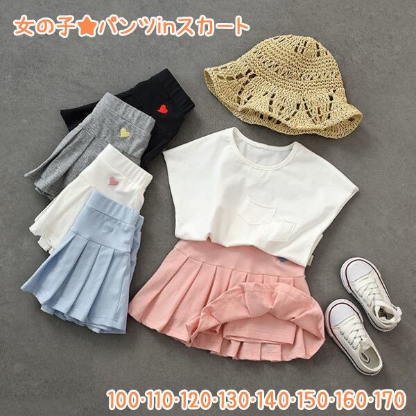 【送料無料 宅ゆ】キッズ パンツinスカート プリーツスカート スカパン パンツインスカート ミニスカート 女の子 子ども服 子供 こども プレゼント 誕生日 可愛い かわいい お洒落 学校 通学 オシャレ Y2Kファッション 韓国 韓国アイドル 春 夏 秋 rssk-k3 220414