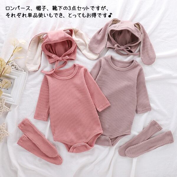 【メール便送料無料】ベビー うさぎさんロンパースセット うさ耳 うさぎ帽子 長袖 靴下 男の子 女の子 可愛い かわいい 子供 子ども こども 赤ちゃん 韓国 出産 内祝い ギフト プレゼント 誕生日 春 秋 ハロウィン 仮装 コスプレ 年賀状 60 65 70 80 90 rsrp-b41 221122